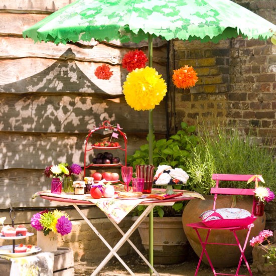 Um espaço tão pequeno e tão agradável, não acham?... e é essa a ideia deste post de hoje. Tirar partido dos espaços pequenos lá fora! Bom... eu não sou a melhor pessoa para falar das plantas ideais para isso podem consultar o blog da minha cunhada Teresa Chambel (aqui), mas posso mostrar-vos o potencial que podem ter espaços tão pequenos como este! Com apenas um elemento de côr, mesa e cadeiras (sem serem de plástico por favor!!!) almofadas coloridas e lanternas e temos um recanto de sonho para passar uma tarde de domingo com a família ou os amigos!