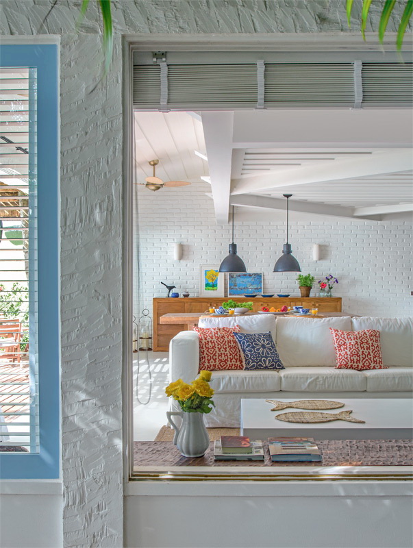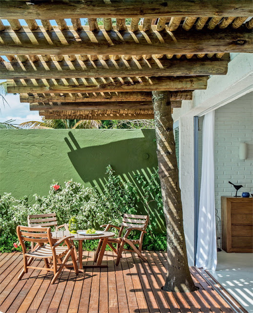It's a beautiful sunny day out here and today I just feel like dreaming of places like this! ... I'm in love with this vacation home! The wonderful location, the neutrals punctuated with fresh colors and joyful living for perfection, predominantly white, the wooden pieces and robust palm that remained untouched climbing the porch! Let's forget our problems and picture yourself here for 3 minutes!